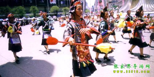 亞宜帶領(lǐng)眾人迎敵,戰(zhàn)斗了三天三夜,終因寡不敵眾向西撤退,得到貴州苗族支持,同官家周旋了一年。第二年四月八亞宜和貴州英雄亞努等人戰(zhàn)死在貴陽城。從那時(shí)起,“四月八”就成了青年男女聯(lián)歡節(jié)和祭祀英雄的紀(jì)念日。盡管歷代統(tǒng)治階級(jí)都以各種借口加以禁止,而具有反抗精神的苗族人民,只是改變了跳花的形式,仍然保留著聚會(huì)對(duì)歌內(nèi)容。一年一次,世代相傳,知道民國(guó)時(shí)期各地才先后中斷。后于一九八一年國(guó)家民委批示統(tǒng)一在京的苗族過“四月八”而才得到恢復(fù)。一九八六年在鳳凰上下落朝井鄉(xiāng)龍?zhí)梁哟澹?ldquo;四月八”的發(fā)源地舉行隆重聚會(huì)。這一天啟明星才掛在樹尖尖上的時(shí)候,湘黔邊境各地的男女青年,身著節(jié)日的盛裝,踏著路邊毛草上的露珠,唱著歌,吹著木葉,嘻嘻哈哈,迎著燦爛的朝露,從各條彎彎的山道上,向“跳花溝”涌來。十嶺八坡,山溝里外,龍河兩岸都站滿了人,熙熙攘攘,熱鬧非凡。會(huì)場(chǎng)的正中掛有寬六尺長(zhǎng)七尺的淺紅大旗,繡有“四月八”三個(gè)大字,兩邊龍鳳圖案,莊嚴(yán)古樸,表示歷史悠久和不忘祖先功德。