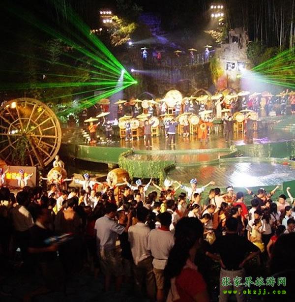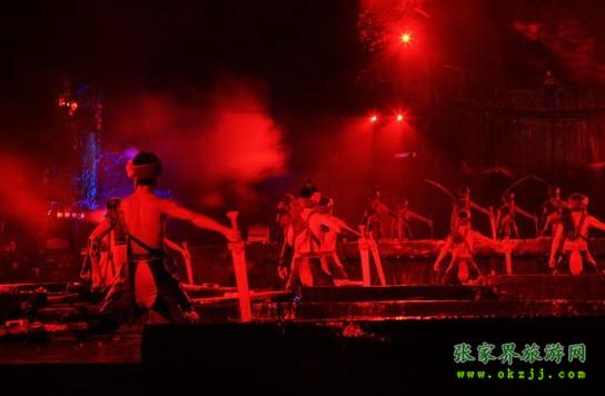 The Ancient Mystical Legend of zhangjiajie 《武陵魂•梯瑪神歌》是一場記述土家族起源、演變、戰(zhàn)爭、生產生活等內容的大型立體山水實景演出,揉合了音樂、舞蹈、文學等多種藝術形式,如幻如夢的舞美燈光,搖曳生姿的原生態(tài)歌舞……濃縮了土家族數(shù)千年的發(fā)展歷史,400多名演員以自然淳樸的表演充分的展示了土家的民族文化特征,給游客帶來了耳目一新的感受。一場視聽的饕餮盛宴,一曲驚天地、泣鬼神的曠世古歌,給人山水文化光影視聽的享受?!境銎罚?a class="insidelink" target="_blank" title="張家界">張家界梯瑪神歌文化傳播有限公司】 Time come from language of China′s Tujia nationality, it means god-worshipers when offering sacrifices to their gods. The songs are a combination of various art forms, such as music, dance and literature. Sumptuous lightings, smooth dances, long-lost sacrifice ceremonies, mysteries high-pitched spell, among others create a real sensation.