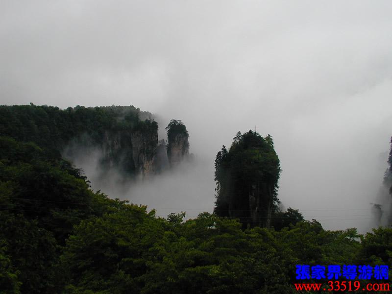 這里,我還給大家講個(gè)奇異現(xiàn)象。1991年4月的一天下午,雨過天晴,整個(gè)天子山漫開一片朦朦朧朧的薄霧,從西海到神堂灣一帶,一座座巖峰在霧中時(shí)隱時(shí)現(xiàn)。一群上海游客來到點(diǎn)將臺,忽然,一幅奇異的場景把大家驚呆了:神堂灣中央,七位少女從云霧中飄落到一座巖峰峰頂?shù)钠脚_上,飲茶、撫琴,翩翩起舞達(dá)40分鐘之久。游客們起初以為是一種幻覺,揉揉眼睛再看,仍然是三綠四紅,長發(fā)披肩,體態(tài)婀娜,舞步輕盈。直到“仙女們”隨一片云霧漸漸隱去的前一秒鐘,大家仍然不敢弄出半點(diǎn)聲響,有相機(jī)的就拼命按快門。遺憾的是距離太遠(yuǎn)了,當(dāng)晚將膠卷取去沖洗,什么也沒留下。消息傳開后,有人相信,有人不相信。其實(shí),神話也好,事實(shí)也好。這種奇異現(xiàn)象完全可用科學(xué)去解釋。“海市蜃樓”這是人所共知的;而大沙漠中不也經(jīng)常出現(xiàn)綠洲、村莊、城市么?