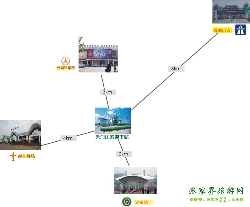 天門山索道下站距荷花機(jī)場3公里,距火車站0.5公里,距長張高速公路出口也僅8公里之遙。景區(qū)周圍另有張羅、張清、張桑等公路通往省內(nèi)各個方向。進(jìn)城公路和市內(nèi)主要道路均安裝了交通指引標(biāo)示,寬暢的道路和清晰的指引路牌使得游客抵達(dá)天門山特別方便順暢。