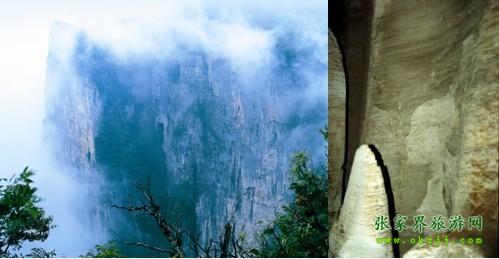 在天門山的峭壁上,有一個方形洞口,即為天門山十六洞里最為著名的鬼谷洞.這個洞上距山頂百米,下臨深淵萬丈,地勢險峻,因鬼谷先師曾經(jīng)在此隱居修煉而得名.天門十景,鬼谷洞以玄壁隱仙著稱.