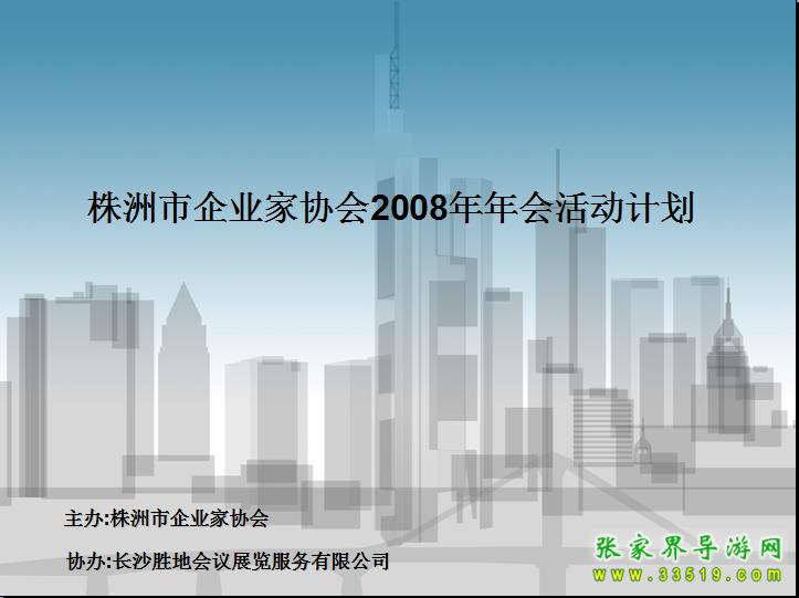 株洲市企業(yè)家協(xié)會2008年年會活動計(jì)劃個性化解決的方案,具體的活動策劃方案請查看下面的PPT文檔