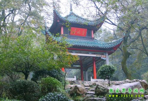 愛(ài)晚亭位于岳麓書院后青楓峽的小山上,八柱重檐,頂部覆蓋綠色琉璃瓦,攢尖寶頂,內(nèi)柱為紅色木柱,外柱為花崗石方柱,天花彩繪藻井,蔚為壯觀。清乾隆五十七年(公元一七九二年)山長(zhǎng)羅典所建。原名“紅葉亭”,又名“愛(ài)楓亭”。后據(jù)唐代詩(shī)人杜牧《山行》而改名為愛(ài)晚亭,取“停車坐愛(ài)楓林晚,霜葉紅于二月花”之詩(shī)意。