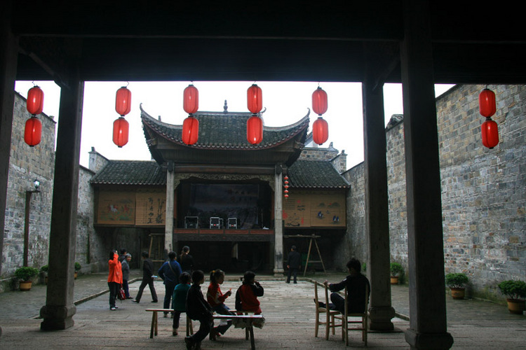 臨河戲臺幾乎天天都唱戲給烏舡子看。唱他們最愛看的湘劇,并且都是折子戲而非整場戲,因為整場戲常常要唱十天半月,烏舡子沒看得完就要返航。折子戲短,最切合烏舡子的??繒r日。唱的多半是“三國戲”:《空城計》、《定軍山》、《走麥城》、《三氣周瑜》,還有《黃鶴樓》、《摘梅桃》……數(shù)也數(shù)不完。戲班子都是由八元堂寧鄉(xiāng)會館從各地邀請來的,免費公演。招呼戲班子的費用由會館埋單,免不了要請到怡華樓、月華樓、奇珍閣等有名的飯館去吃“八大碗”,唱完戲還有夜宵招待,吃靖港的特色小吃。戲班子當(dāng)然就更賣力。烏舡子上的船老大不但愛看戲,還蠻會享受,他們把船搖得正正地對準臨河戲臺,和小老婆肩并肩雙雙坐船頭,一邊津津有味地看戲一邊津津有味地喝著靖港谷酒,吃著從靖港街上買來的香干子和鹵菜,搖頭晃腦,張嘴咋舌,樂不思蜀。也有許多古鎮(zhèn)居民來看免費戲,他們常常爬到烏舡子上,與船老板和和老板娘一起看戲,船老板熱情大方,會讓出座位來,邊看戲邊和本地居民扯談,對古鎮(zhèn)也就更加熟悉了解。
