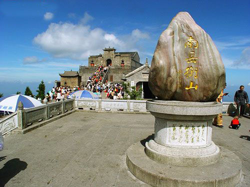 山巔祝融峰,海拔1290米,由于煙云的烘托和群峰的疊襯,構成了"萬丈祝融拔地起,欲見不見輕煙里"的雄姿。登臨其上,可見北面洞庭湖煙波渺渺,若隱若現(xiàn),南面群峰羅列,如障如屏,水面湘江逶迤,宛如玉帶,西面雪峰山頂,銀濤翻騰,萬千景象,盡收眼底。