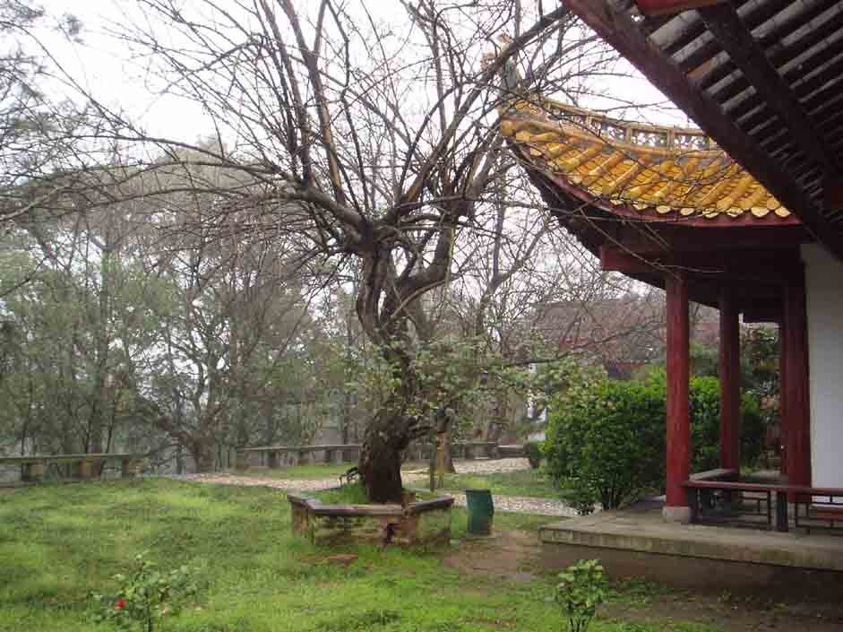酒香亭在君山中部的酒香山峰上,掩映在翠竹藤蔓之中。入亭小憩,不僅鳥語花香,更有一股隱隱酒香撲鼻。原來此山中生長著一種開黃色小花的青藤,花香帶著酒味,這種藤叫酒泉藤,傳說用藤上小花釀的酒,喝了長生不老,可以成仙,這事傳到漢武帝耳里,他便派使臣欒巴率領(lǐng)男女數(shù)十人趕來君山,取回了仙酒。酒到京城,卻被當時能言善辯的臣子東方朔偷飲了。漢武帝得知,“龍顏”大怒,要將東方朔斬首。東方朔不慌不忙地奏道:“如果喝了此酒真會長生不老,可以成仙,皇上就殺我不死,如果臣被殺死了,此酒皇上喝了也不會長生不老。”武帝無言以對,便赦免了他。這事傳到了君山,人們便在酒香山修了酒香亭,以為紀念。如今的此亭,為一九八一年恢復,占地近三十二平方米,高六米余,為四柱方形、磚石木混合結(jié)構(gòu),古香古色,富有詩意。