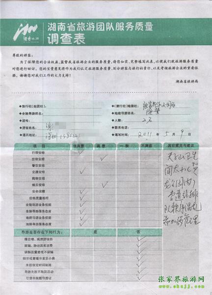 2011年5月9日謝小姐一行2人旅游質(zhì)量反饋:希加強(qiáng)管理