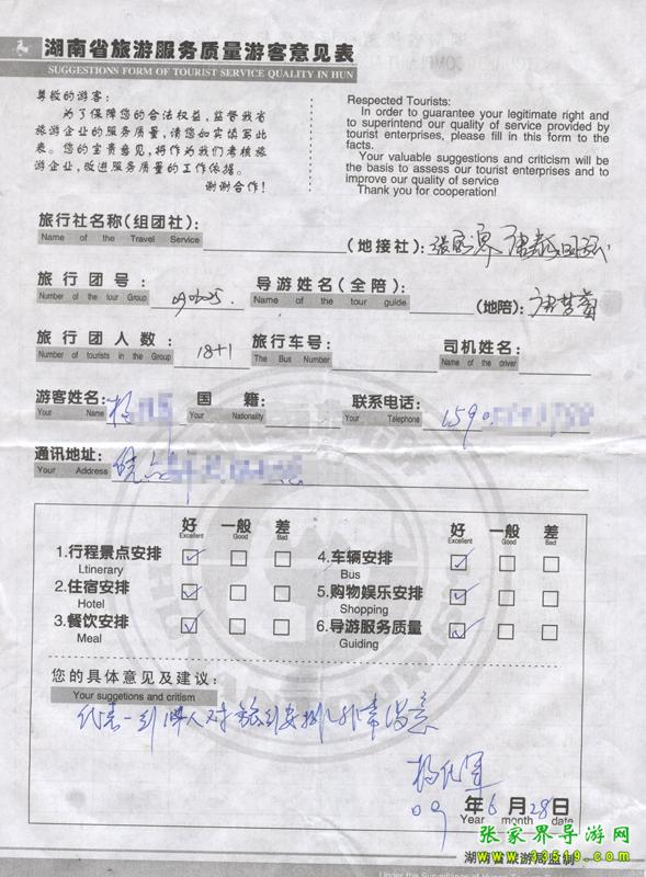 - 游客夏先生為表揚導游李姣姣寫來表揚信致我張家界... [14811]