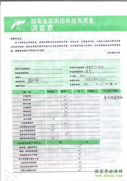 2011年11月24日楊先生一行24人旅游質(zhì)量反饋:導游服務很好