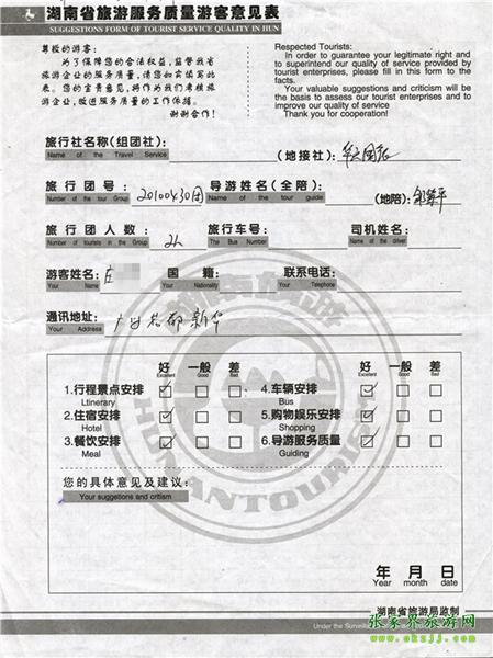2011年5月2日莊先生一行2人旅游質(zhì)量反饋