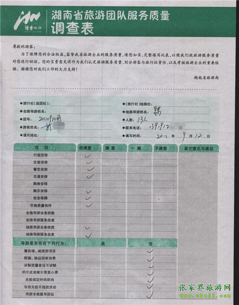 2011年9月12日武先生一行13人旅游質(zhì)量反饋
