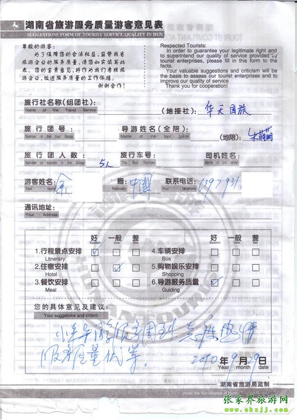 - 游客夏先生為表?yè)P(yáng)導(dǎo)游李姣姣寫(xiě)來(lái)表?yè)P(yáng)信致我張家界... [14811]