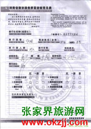 2010年7月4日岳陽(yáng)鄒先生一行19位旅游質(zhì)量反饋