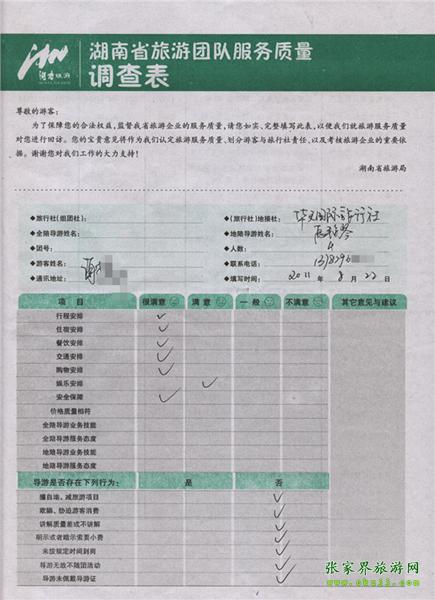 2011年8月22日謝先生一行4人旅游質量反饋