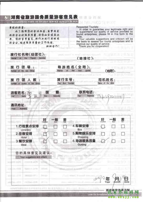 2010年9月14日覃先生旅游質(zhì)量反饋