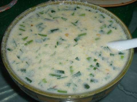 將用水浸泡過的黃豆用磨子磨碎,摻入切細的青菜葉,然后用溫火煮熟即可。此樣菜雖做法簡單,但營養(yǎng)價值極高且味鮮美,為當(dāng)?shù)厝顺S玫囊坏啦恕?/p> ■土家糍粑