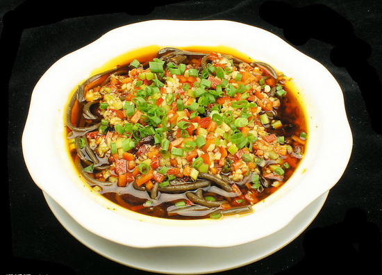 “蕨根粉”的樣子看上去就是黑色的粉絲,它是從野生蕨菜的根里提煉出來的淀粉類做成的粉絲食品。因?yàn)檗Р说母亲仙模宰龀龅姆劢z也就成了“黑粉絲”。蕨根粉保留了蕨菜根里大部分營(yíng)養(yǎng)(涼粉、粉絲營(yíng)養(yǎng)與原料比損失的多且豆粉的不易消化),而“蕨根”對(duì)人體的保健作用是根莖類食物里名列前茅的,這也是符合顏色越深的,營(yíng)養(yǎng)越高規(guī)律的又一個(gè)例子。