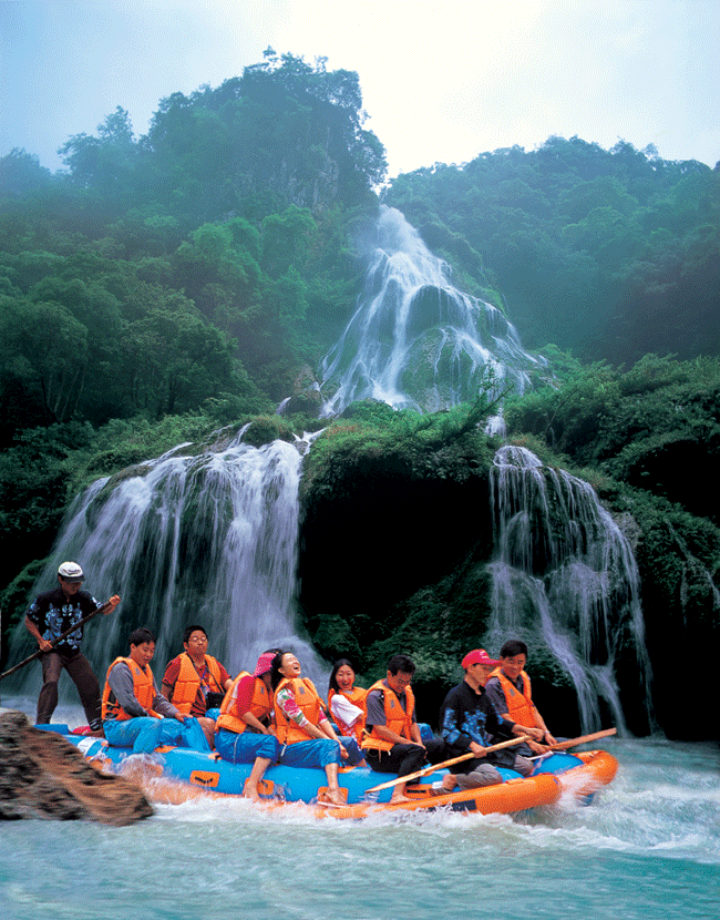 到了大門口,彭導(dǎo)幫我們?nèi)ベI了門票,248元/人,共花去496元。彭導(dǎo)先前給我們預(yù)算是,按最經(jīng)濟(jì)的帳目來算的,470元/人(包括進(jìn)山大門票,但不包括索道、天梯、酒水等),他說出門在外,能節(jié)約點(diǎn)就節(jié)約點(diǎn)。當(dāng)然他也知道我們可能會超出這個標(biāo)準(zhǔn),如果有必要,到時可以再自己花費(fèi)。買了門票后,我給了他500塊,算是這幾天的費(fèi)用,他說,不是說好是每人470的嗎,你應(yīng)該是給我444塊。我說,上次謝謝您的關(guān)心,這次不能讓你太吃虧了。彭導(dǎo)說,那今天晚上我叫店家給你們加個菜,呵呵呵。 下午,我們玩了森林公園中的黃石寨和金鞭溪??戳颂鞎鴮毾弧Ⅻc(diǎn)將臺、南天柱、摘星臺、六奇閣,五指峰、金鞭溪、金鞭巖、文星巖、紫草潭、千里相會等,彭導(dǎo)果然是彭導(dǎo),有著二十年的導(dǎo)游經(jīng)驗(yàn)的他就是不同凡響啊,個個景點(diǎn)都是如數(shù)家珍,說得是頭頭是道。(據(jù)網(wǎng)上說,有些導(dǎo)游是只帶路不講解,讓人只是看看表面,而無法去領(lǐng)略張家界那些精美絕倫的凄美傳說。我個人認(rèn)為張家界的傳說也是應(yīng)該值得每一個游人去了解,去領(lǐng)略的,如果你來張家界沒有聽到這些傳說的話,那一是你的導(dǎo)游的水平問題,二是你的一個很大的遺憾,你來張家界的經(jīng)歷是不完美的),什么龍蝦花的來歷,金鞭巖的前身,秦始皇和孟姜女與張家界的關(guān)系。晚上乘百龍電梯上袁家界(張家界的核心)一家旅館住宿。晚餐時,一葷一素一湯。我們吃著吃著,老板笑咪咪的搬上一鍋火鍋,當(dāng)?shù)氐耐岭u火鍋。我們很詫異,我說,我們沒有點(diǎn)這個菜?。±习?,你是不是弄錯了?老板說,這是你們彭導(dǎo)叫我特地做的。我突然明白了,一定是彭導(dǎo)是為我多給的那50多塊錢了。由于長途奔波,加上下午又走了很多路,晚上洗了一個澡就睡下了。山里的氣溫很低,在這全國都如火爐時,張家界的晚上卻要蓋很厚的被子,真是一塊寶地啊。 第二天早上,我們參觀了袁家界的風(fēng)景,其中最有名的當(dāng)然數(shù)天下第一橋,這是由兩座巖石山的山頂自然生長在一起,非人所能為也。天下第一橋的稱號當(dāng)之無愧啊。當(dāng)然在袁家界,后花園也是不能不看的。張家界號稱“峰三千,水八百”,在這里你就能明顯的感覺到這句話的前半句是那么的實(shí)在??赐陱埣医绲暮诵脑医纾覀兂塑嚨搅?a class="insidelink" href="http://m.buylacostes.com/scenic/zjjjq/1529295057.html" title="天子山">天子山(張家界景區(qū)內(nèi)的最高的地方)。玩了賀龍公園、御筆峰、仙女散花、西海、石船出海、仙人橋、天子廟、十里畫廊、一步難行。不巧的是,那天山上下了一點(diǎn)陣雨,雨后一條彩虹掛在天上,更重要的是山上起了一點(diǎn)霧,使整座山都籠罩在霧中,若隱若現(xiàn),看上去就象是在云海中,好象老天特地配合我們似的,難得一見的西海等正好被我們趕上了。彭導(dǎo)告訴我們,這樣的機(jī)會是很難得的,可能是張家界為了感謝我的再次到來,給了我一個特別的禮物吧。我大笑。晚上趕到昨天住的地方去住宿。不提。 第三天我們玩了烏龍寨、三道鬼門關(guān)、天波府、一步登天、空中走廊等。主要是在楊家界的景區(qū)范圍內(nèi)。本來是第三天下午要去鳳凰的,但是考慮到我和女友小嵐好容易來張家界一次,盡量將張家界的能玩的地方去玩一下。我也曾聽說張家界不僅峰三千,水八百,同時天然溶洞也是非常不錯的,據(jù)說其中一個溶洞為一根鐘乳石投保了1個還是2個億,(不怎么記得了,呵呵。)而且在張家界的宣傳資料上還看到了有漂流,打水仗等非常刺激的項目。我于是問一下彭導(dǎo),能否幫我們聯(lián)系一下,彭導(dǎo)很爽快的答應(yīng)了,他幫我們聯(lián)系了九天洞和茅巖河的公司。在彭導(dǎo)的上下打通下,本來是315元/人的行價,硬是給用278元/人的價格給拿下了。當(dāng)搞定這些時,已經(jīng)外面是天黑一片了(彭導(dǎo)家就在楊家界)彭導(dǎo)說他想回家看看,明天我們會和一群人去看洞和漂流,他就不陪我們?nèi)チ耍魈煜挛缢麜趶埣医缡袇^(qū)去接我們,到時會有車送我們?nèi)ナ袃?nèi)。然后他會送我們上去鳳凰有車,并幫我們?nèi)ヂ?lián)系鳳凰的朋友來招待我們。 第四天,清晨我們便踏上了汽車去看洞漂流。號稱亞洲第一大洞的九天洞果然是名不虛傳,我們把它現(xiàn)在開發(fā)的部分粗略的走了一下,就花了我們近月4個小時,洞中鐘乳石遍地,在五彩斑闌的燈光下,顯得晶瑩剔透,閃閃發(fā)光,讓人感覺到是到了水晶宮一般,地下還有陰河,遠(yuǎn)處通知海(據(jù)說)。對了,洞中溫度很低,常年在10多度。讓人在其中感覺到一陣陣寒意。故想進(jìn)去的朋友記得多穿點(diǎn)衣服,以免著涼,切記。我們當(dāng)時就是吃了很大的虧,從洞中出來時,小嵐就在點(diǎn)喀漱。下午來到茅巖河漂流。上船前看到有人賣水瓢,心中不免奇怪。雖說,張家界金鞭溪的水可以喝,但也不是每一條河的水都能喝啊?于是上前去問,一打聽才知道,這瓢不是用來舀水喝的,而是用來打水仗的。本來因?yàn)樾褂悬c(diǎn)小感冒,我們打算保持中立,但一看到各位船友們個個磨拳擦掌,人手一把瓢或者水槍(這是當(dāng)?shù)厝擞弥褡幼龅囊环N土水槍),還且對我們是虎視眈眈,我想我參加是不成了